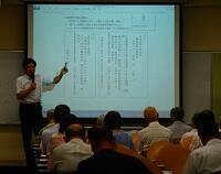 講義は本校多目的室でおこなわれ(13:00~15:15)、講師の本校飯塚教頭が多胡碑の碑文の語句や文字の様々な読み方や学説を紹介するとともに、これまであまり注意が向けられてこなかった碑文の後半部分、すなわち碑文の半分以上を占める中央貴族4名の記載の意味について新しい見方も提示し、参加者とともに問題を共有しました。