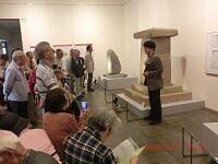 高崎市の多胡碑記念館では、白石修館長様にご挨拶いただいたあと、さっそく飯塚教頭の案内で館内を見学しました。特に、三碑のレプリカが並び、三つの石碑を比較して眺めることができる〝上野三碑のへや〟での説明に最も多くの時間を割き、参加した皆様は熱心に耳を傾けていました。多胡碑では高崎市教育委員会の協力で特別に扉を開けていただき、じかに石碑を見ることができました。