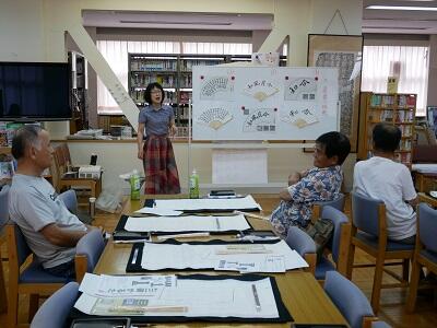 末広がりの縁起ものの扇を手に手に、多胡の古碑や万葉の古典に来し方を温ね、腰を落ち着けて末永く心豊かに知を広げていかんとの思いが込められた、世界にただ一つの作品を手に、記念撮影をして終了しました。
