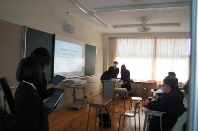 2月4日(水)に5月から取り組んできた課題提示型探究活動の最終プレゼンテーションが行われました。感染症の流行がある中でしたが、穴が空いたグループは臨機応変に対応し、無事すべての班がプレゼンを終えることができました。課題解決の提案が実践に至っていないグループは今後も活動を継続していくことになります。