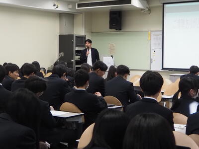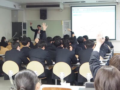 2/6(金)、本校卒業生で金融の第一線で活躍する磯川氏を講師に招き、3年生向けに金融セミナーを行いました。