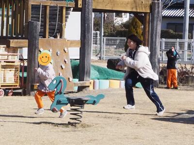 4つの劇とリズム遊びを楽しんだあとは、園庭での自由遊び。寒さに負けず元気いっぱいな子どもたちと一緒に走り回り、交流を深めました。貴重な実践の場を提供してくださった園の皆様、本当にありがとうございました。