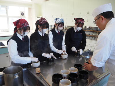 東日本調理師専門学校様にご来校いただき、和菓子の実習を行いました。初めて「練り切り」に挑戦し、かわいい椿の花を作ることができました。お抹茶の点て方も教えていただき、美味しくいただきました。ありがとうございました。