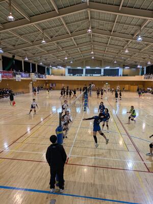 3月16日(日)に吉井高校周辺の学校を中心とする17校に参加していただき、交流大会を実施いたしました。5つのコートで各チーム4試合、全34試合を行いました。大きなケガやトラブルなく無事に終了することができました。この交流大会は1セット目の選手と2セット目の選手は原則異なる選手であるという制約のもと、すべての選手がコートに立ち競技する中で、新たな発見や気づきを得られることを狙いとして行っており、3年目を迎えました。コロナ以前は1番を決める大会でしたが、それとは異なる新たな価値の創造を果たせているのではないかと感じております。次年度以降も、吉井高校でバレーボールをしましょう!
