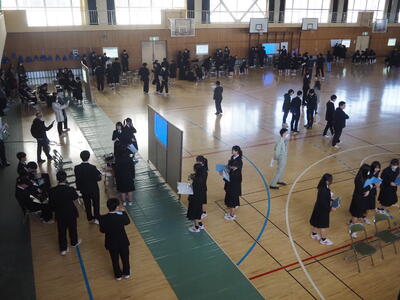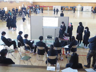2年生が総合的な探究の時間として1年間取り組んできたプログラム「idomu」の最終活動報告会を行いました。各グループが協力企業から提示された課題を解決するために試行錯誤を繰り返しながら行ってきた活動を、1年生に向けてプレゼンしました。