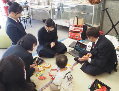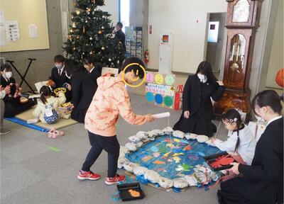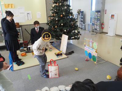 館内に吉井高校「こども広場」を設置し、文化祭に訪れたお子さんと一緒に遊ぶ体験をさせていただきました。魚釣りは3年保育実践で、ストライクボード、フェルトのお弁当は2年保育基礎で、赤鼻のトナカイ楽器演奏は3年保育指導法で制作したものを持参しました。どれもお子さんたちに喜んでいただき、勉強になりました。このような機会をいただきました新島学園短期大学様に感謝申し上げます。