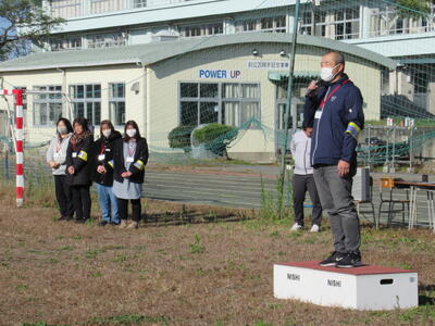 11月20日(木)に第50回校内マラソン大会が実施されました。PTAの支援事業としてミネラルウォーターを生徒へ配布しました。本部役員の方々5名に参加していただき、開会式では本部役員を代表して、西澤さんに生徒たちへ激励の言葉をかけていただきました。また、走路指導もお手伝いいただき、無事に大会を終えることができました。