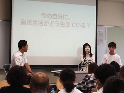 全体説明の後、卒業生と教職員による座談会を実施し、本校の魅力をお伝えしました。皆さん、熱心に耳を傾けてくださいました。